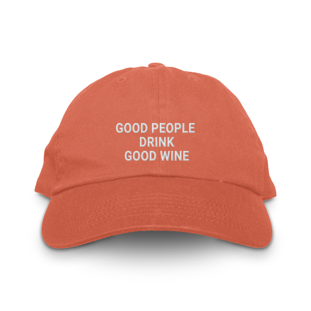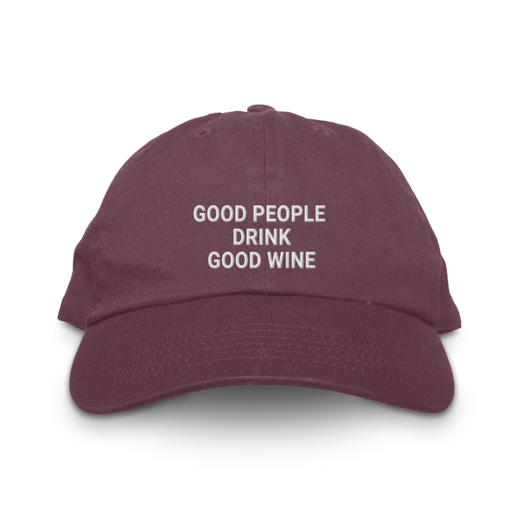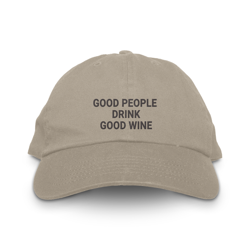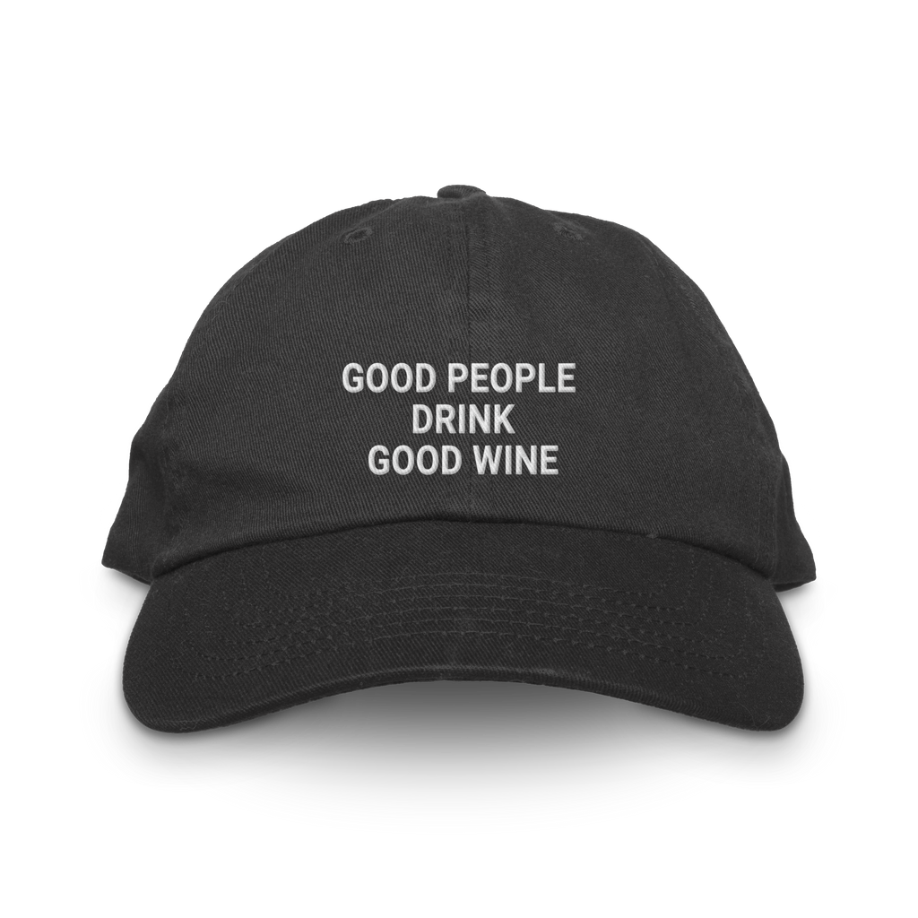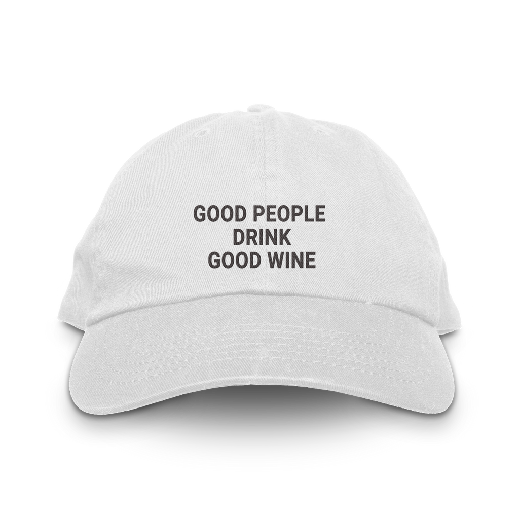 The Good People Drink Good Wine hat is for the wine lover who has strong opinions about what's in their glass and even stronger opinions about the people they share it with. A simple truth, embroidered on a classic dad hat.